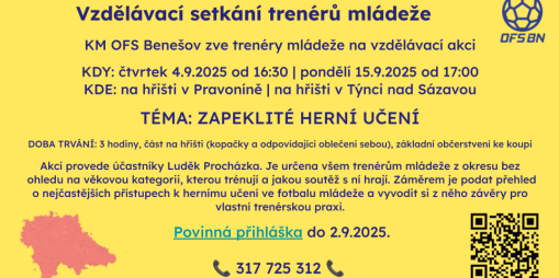 KM OFS Benešov zve trenéry mládeže na vzdělávací akci.