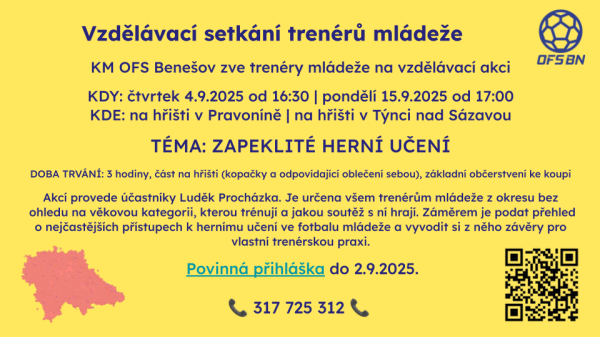 KM OFS Benešov zve trenéry mládeže na vzdělávací akci.