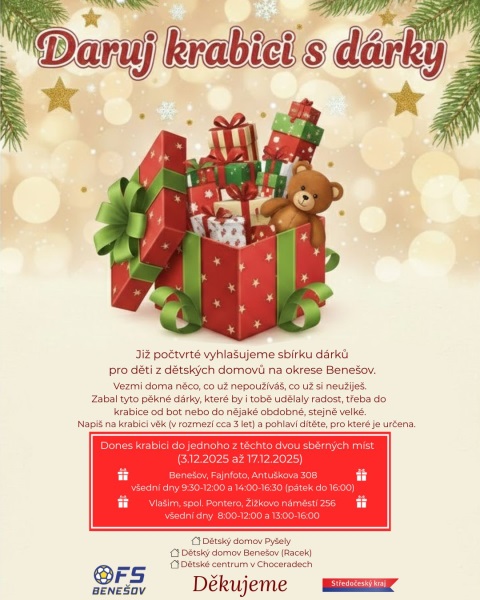 Dones krabici do jednoho z těchto dvou sběrných míst (ve dnech 3.12.2025 až 17.12.2025):